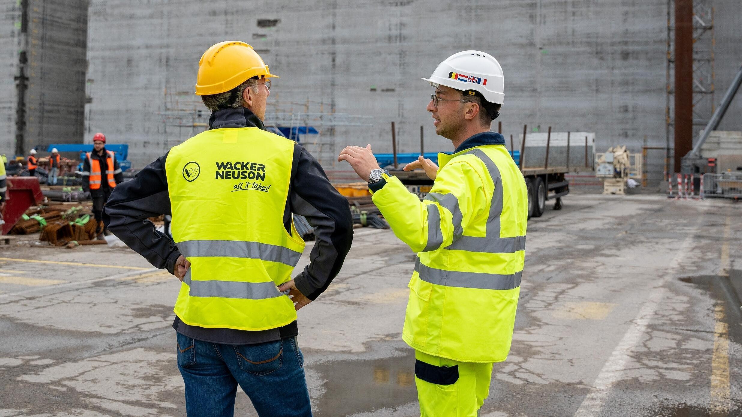 Wacker Neuson supports this construction site with its long-term expertise in the field of concrete consolidation. More than 120 powerful high-frequency internal vibrators IRFU are in use, ensuring consistently high and reliable consolidation during the days of work. “Each caisson is poured 24 hours a day over seven to eight days. During this period, it is necessary to continuously consolidate the concrete. We can completely rely on the high quality of advice from Wacker Neuson and the reliability of the products used in this project. Wacker Neuson has found very good solutions for all our technical challenges,” explains Matthias Liefooghe, Technical Superintendent Heavy Equipment, Jan de Nul/TM Edison. Lex van Leusden, Concrete Technology Account Manager at Wacker Neuson in the Netherlands, adds: “In projects like these, close and trustworthy collaboration with the customer is of particular importance. We are proud that we can contribute to the first energy island in the world with our know-how.”