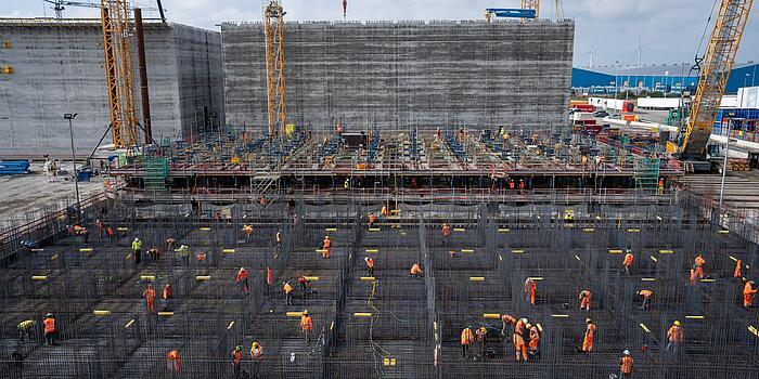 Since the start of 2024, the world’s first energy island has been under construction in the Princess Elisabeth zone, 45 kilometers from the Belgian coast. The six-hectare “Princess Elisabeth Island” will serve as an energy hub from about 2030 and will provide a significant contribution to the sustainable energy supply in Europe. The island is being erected on a total of 23 caissons, which are being manufactured in the North Sea port Vlissingen in the Netherlands since this year by TM Edison, a joint venture of the Belgian companies DEME and Jan de Nul Group. Each caisson is approximately 60 meters long, 30 meters wide and 22 meters high. The Wacker Neuson battery-converter backpack ACBe and various high-frequency internal vibrators IRFU were used in the consolidation of these concrete elements.